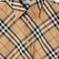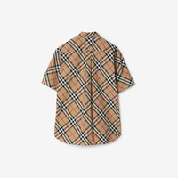 Product Details A short-sleeved shirt in Italian-woven cotton poplin. The style is patterned with the Burberry Check and cut to a regular fit. Part of Burberry Classics, wardrobe foundations with a unique Burberry slant. - Button closure - Point collar - Curved hem - Regular fit. Fits true to size, take your normal size. - Machine wash - Item 80876371 Size & Fit - Length: 78cm/30.7in (size UK L) - Model’s height: 189cm/6ft 2in. Model wears size UK L Fabric & Care - 100% cotton* - Buttons: mother-of-pearl - *100% of the cotton in the main material is organic - Imported