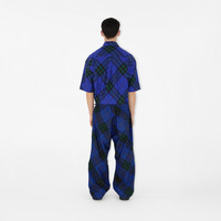 PRODUCT DETAILS A short-sleeved shirt in Burberry Check cotton twill, embroidered with the Equestrian Knight Design. The style is cut to an oversized fit with a button-down collar. - Length: 84.3cm/33.2in (size UK M) - Model’s height: 184cm/6ft 1in. Model wears size UK L Oversized fit 100% cotton Buttons: mother-of-pearl Specialist dry clean Imported Item 80829021