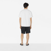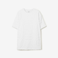 PRODUCT DETAILS A tactile towelling T-shirt, woven with a seasonal iteration of our Burberry Check designed for our summer collection. - T-shirt length: 76cm/29.9in. This is based on a size UK M. Relaxed fit. This style is cut to a loose silhouette. 100% cotton Trim: 98% cotton, 2% elastane Silicone patch with raised Burberry lettering at side Machine wash Made in Portugal Item 80714491