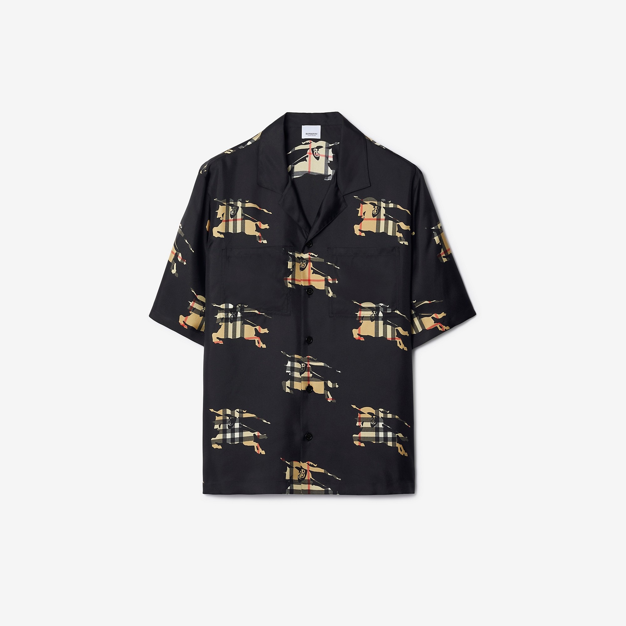 PRODUCT DETAILS Printed Burberry Check Equestrian Knight Design - Shirt length: 73.5cm/28.9in (size UK M) Oversized fit 100% silk Buttons: mother-of-pearl Specialist dry clean Imported Item 80727231