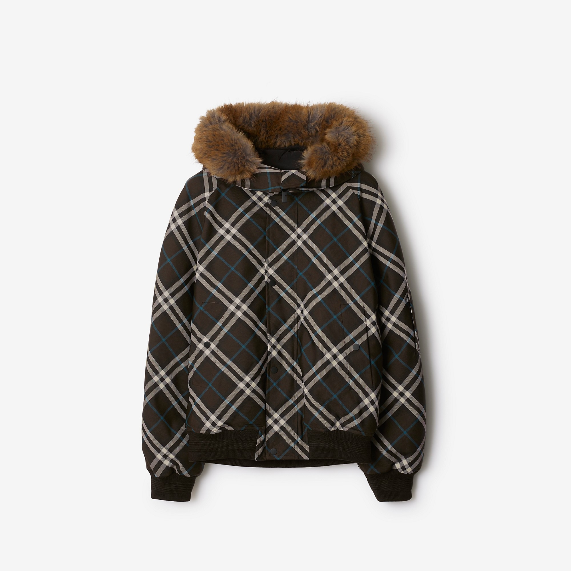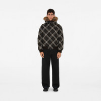 Product Details A bomber jacket in Burberry Check twill, trimmed with faux fur at the hood. Cut to an oversized fit with raglan sleeves, the design is filled with goose down and feathers. - Press-stud and zip closure - Drawcord hood - Sleeve zip pocket, side press-stud pockets - Rib-knit trims - Appliqued Equestrian Knight Design - This item will be packaged in a recycled cotton tote unless the gift packaging option is selected at checkout. - Oversized fit: our loosest cut, designed for exaggerated proportions. We recommend sizing down. - Item 80915941 Size & Fit - Length: 66cm/26in (size UK L) - Model’s height: 191cm/6ft 3in. Model wears size UK L Fabric & Care - Outer: 100% polyester - Trims: 100% polyester; 96% cotton, 3% polyamide, 1% elastane - Lining: 100% polyamide - Filling: 80% goose down, 20% goose feathers - Wadding: 100% polyester fibres - Specialist dry clean - Imported