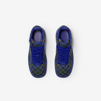 PRODUCT DETAILS Italian-made sneakers in stretch nylon knitted with a check pattern. The mesh-lined style features barbed wire hardware at the laces and rubber soles moulded with archive Burberry lettering. Upper: 98% polyamide, 2% elastane Trim: 70% polyester, 30% brass Lining: 63% polyester, 23% calf leather, 7% goat suede, 7% sheep leather Sole: 100% thermoplastic polyurethane Made in Italy Item 80888271