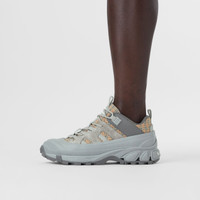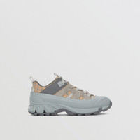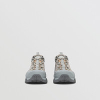 PRODUCT DETAILS Our runway sneaker crafted in our microcheck technical cotton with suede and leather trims. The style is capped with a matte overshoe inspired by rain boots and a cross-detailed tread referencing our iconic check. Upper: 33% polyester, 28% calf leather, 17% calf suede, 17% cotton, 4% polyurethane, 1% fibreglass Trim: 70% polyamide, 30% polyester Lining: 54% polyester, 37% sheep leather, 9% goat suede Sole: 100% polyurethane Lace-up closure Silicone patch with raised Burberry lettering at tongue, embossed Burberry lettering at heel Made in Italy 80438641