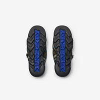 Product Details Quilted mules made in Italy from a nylon blend printed with the Burberry Check. The padded design features Equestrian Knight Design tags at the drawcords and chunky rubber soles moulded with archive Burberry lettering. - Drawcord closure - Rounded toe - Burberry lettering at sole - Equestrian Knight Design tags - Comes with dust bag - Item 80926481 Fabric & Care - Upper: 67% polyamide, 33% polyester* - Trim: 30% polyamide, 30% polyester, 20% brass, 20% thermoplastic polyurethane - Lining: 58% polyester, 42% calf leather - Sole: 85% EVA, 15% thermoplastic polyurethane - *The main material of this product is made with at least 70% recycled content - Made in Italy