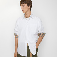 Product Details A long-sleeved shirt in cotton poplin, cut to a regular fit. The style is embroidered with a tonal Equestrian Knight Design and our logo. Fold back the cuffs to reveal the Burberry Check lining in signature sand beige. - Button closure - Point collar - Chest patch pocket - Single-button cuffs - Curved hem - Embroidered Equestrian Knight Design at pocket - Regular fit. Fits true to size, take your normal size. - Machine wash - Item 81155051 Size & Fit - Length: 79.5cm/31.3in (size UK L) - Model’s height: 186cm/6ft 1in. Model wears size UK L Fabric & Care - 100% cotton - Lining panels: 100% cotton - Buttons: mother-of-pearl - Imported