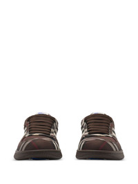 check-pattern lace-up sneakers Highlights - Brown - Check pattern - Lace-up closure - Equestrian knight detail Made in Italy Composition Outer: Polyamide 97%, Polyurethane 3% Lining: Sheepskin 61%, Leather 33%, Goat Skin 3% Sole: Thermoplastic Polyurethane (TPU) 100%