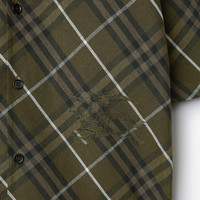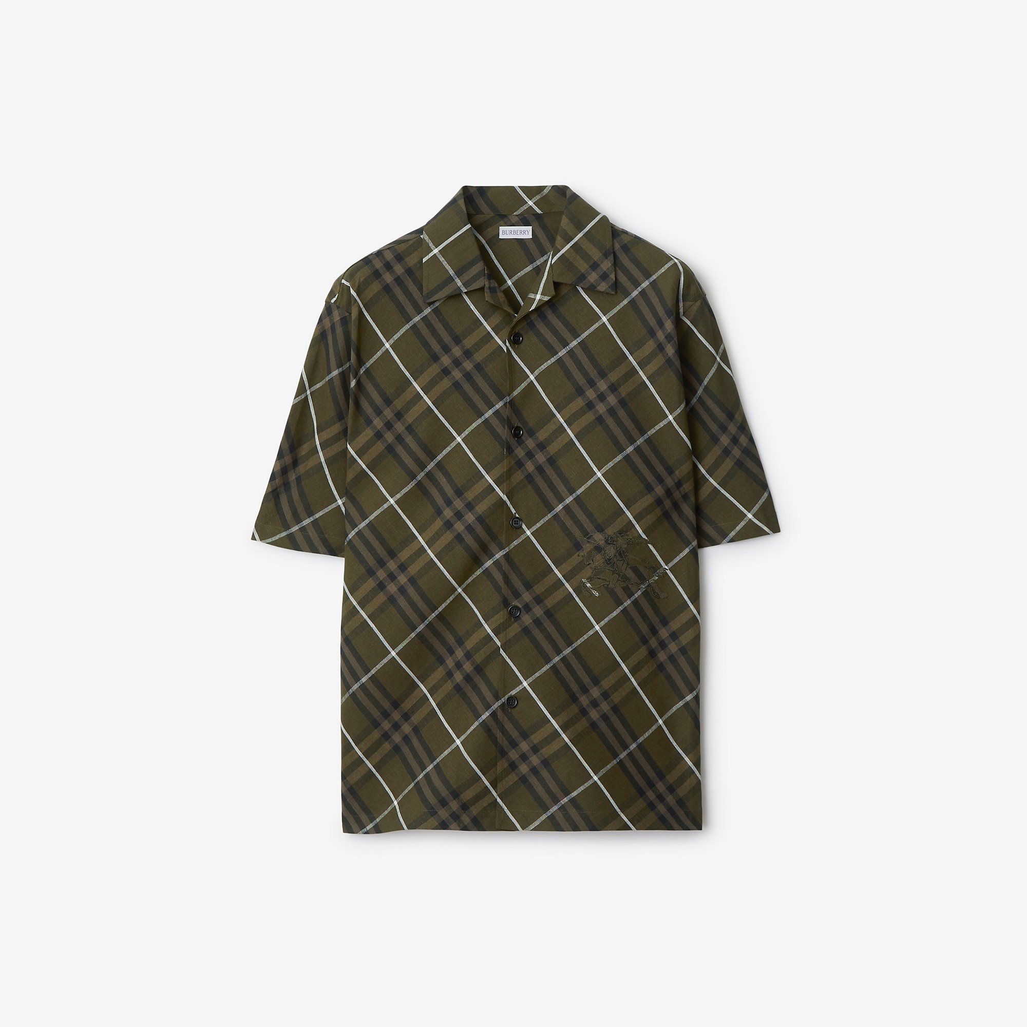 Product Details A short-sleeved shirt in Italian-woven linen. The style is patterned with the Burberry Check and appliqued with the Equestrian Knight Design. Cut to an oversized fit. - Button closure - Spread collar - Straight hem - Appliqued Equestrian Knight Design at front - Oversized fit: our loosest cut, designed for exaggerated proportions. We recommend sizing down. - Item 80902911 Size & Fit - Length: 73.5cm/28.9in (size UK L) - Model’s height: 185cm/6ft 1in. Model wears size UK L Fabric & Care - 100% linen - Buttons: buffalo horn - Specialist dry clean - Imported