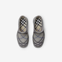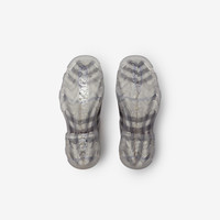 PRODUCT DETAILS Italian-made ankle boots in transparent rubber with a Burberry Check lining. Inspired by wellies, the design is set on a chunky sole featuring archival Burberry lettering. Part of Burberry Classics, wardrobe foundations with a unique Burberry slant. Upper: 100% rubber Lining: 82% polyester, 14% polyamide, 4% elastane Sole: 100% rubber Made in Italy Item 80881241