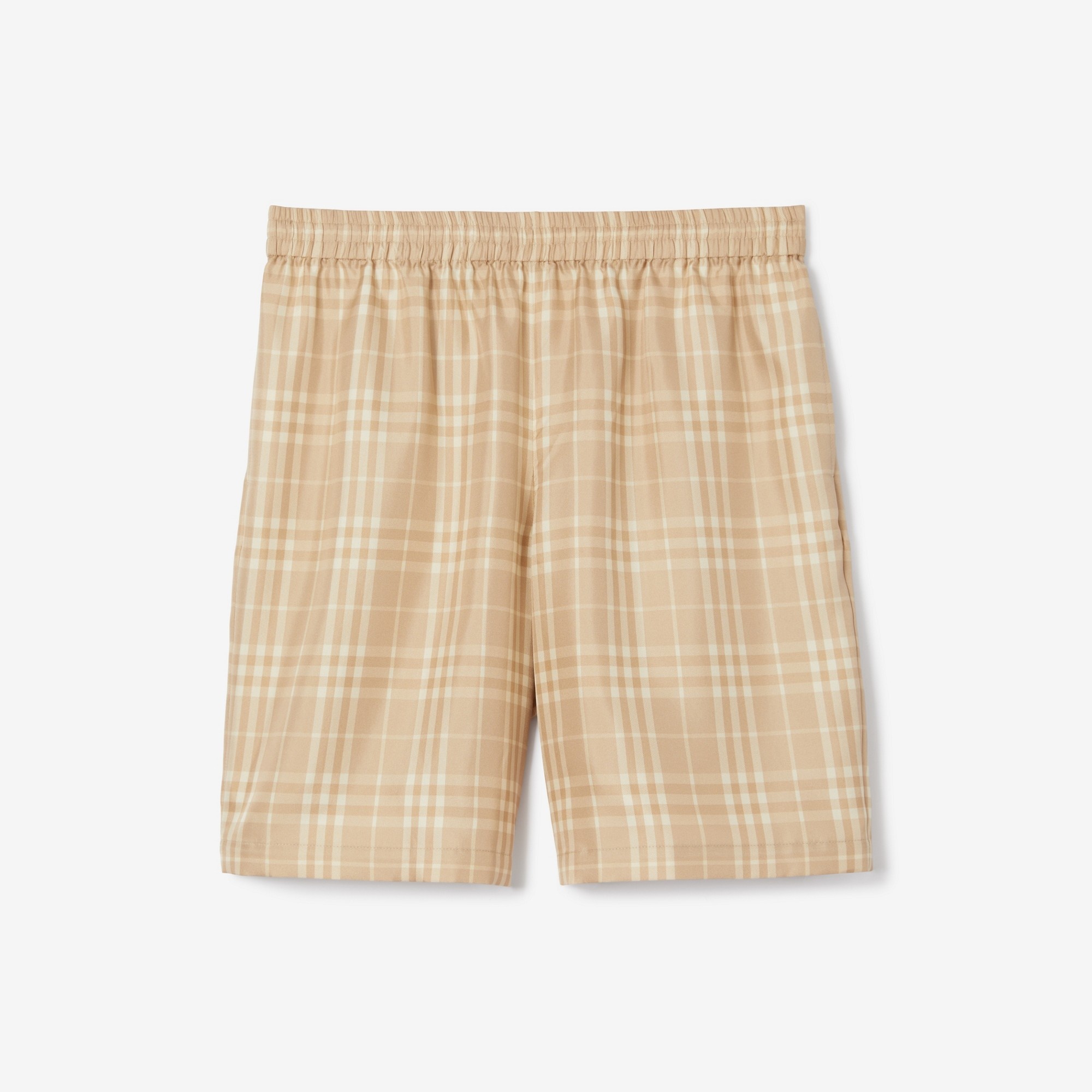 PRODUCT DETAILS Drawcord shorts elevated in Italian-woven silk twill, animated in our Burberry Check. - Shorts inside leg length: 24cm/9.4in. This is based on a size UK M. - Model’s height: 189cm/6ft 3in. Model wears size UK M. 100% silk Interior drawcord waist Side slip pockets, back patch pocket Specialist dry clean Made in Italy Item 80688521