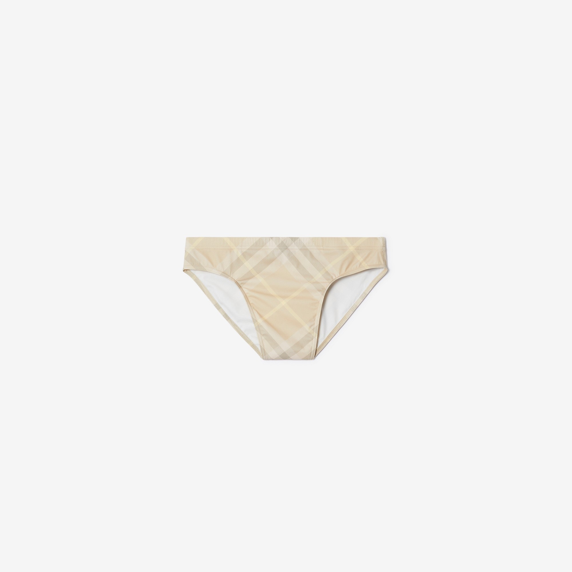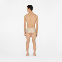 PRODUCT DETAILS Swim briefs in stretch nylon printed with the Burberry Check. - Model’s height: 184cm/6ft. Model wears size UK M Outer: 71% polyamide, 29% elastane Trim: 67% elastodiene, 33% polyester Lining: 74% polyamide, 26% elastane Hand wash Made in Portugal Item 80827271
