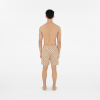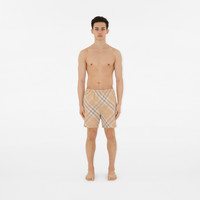 PRODUCT DETAILS A pair of swim shorts in nylon twill, printed with the Burberry Check. The design is cut to a relaxed fit and lined in mesh. - Inside leg length: 16cm/6.3in (size UK M) - Model's height: 184cm/6ft. Model wears size UK M Relaxed fit Outer: 100% polyamide Trim: 92% polyester, 8% elastane Lining: 100% polyester Machine wash Made in Portugal Item 80831611