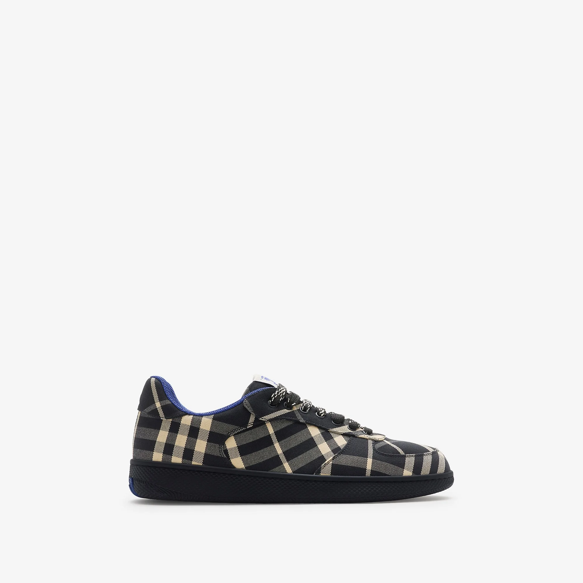 Product Details Italian-made sneakers in a cotton blend twill woven with the Burberry Check. The mesh-lined style features check laces and rubber soles moulded with archive Burberry lettering. Part of Burberry Classics, wardrobe foundations with a unique Burberry slant. - Rounded toe - Equestrian Knight Design label at tongue - Leather insole - Burberry lettering at sole - Comes with a dust bag - Item 80952741 Fabric & Care - Upper: 65% polyester, 35% cotton* - Trim: 70% polyester, 30% brass - Lining: 42% polyester, 29% calf leather, 22% sheep leather, 7% goat suede - Sole: 100% thermoplastic polyurethane* - *The main material and the sole of this product are made with at least 50% recycled content - Made in Italy
