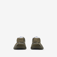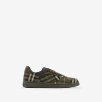 Product Details Italian-made sneakers in a cotton blend woven with the Burberry Check. The mesh-lined style features check laces and rubber soles moulded with archive Burberry lettering. - Rounded toe - Equestrian Knight Design label at tongue - Leather insole - Burberry lettering at sole - Comes with a dust bag - Item 80998251 Fabric & Care - Upper: 65% polyester, 35% cotton* - Trim: 70% polyester, 30% brass - Lining: 42% polyester, 29% calf leather, 22% sheep leather, 7% goat suede - Sole: 100% thermoplastic polyurethane* - *The main material and the sole of this product are made with at least 50% recycled content - Made in Italy