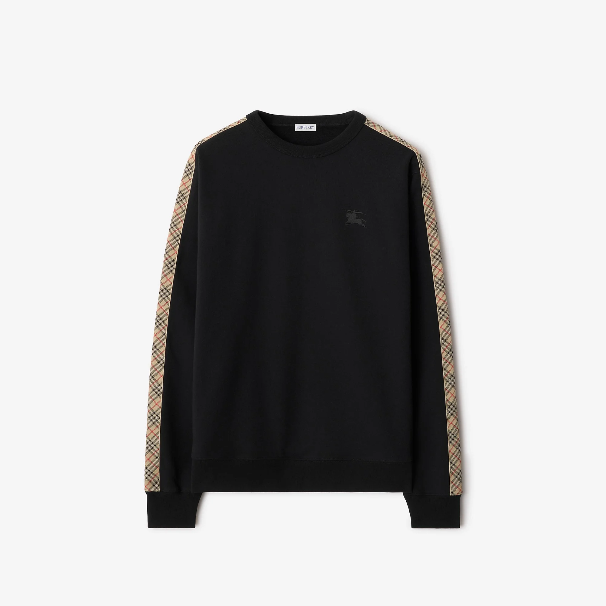 Product Details A sweatshirt in lightweight loop-back cotton, cut to a slim fit. The crew-neck style is framed with Burberry Check taping in our signature archive beige colourway. - Rib-knit trims - Embroidered Equestrian Knight Design at chest - Slim fit: this style is cut to a fitted silhouette. Fits true to size, take your normal size. - Machine wash - Item 81187511 Size & Fit - Length: 72cm/28.4in (size UK L) - Model’s height: 187cm/6ft 2in. Model wears size UK L Fabric & Care - 100% cotton - Trims: 100% cotton; 100% polyester; 99% cotton, 1% elastane - Made in Portugal