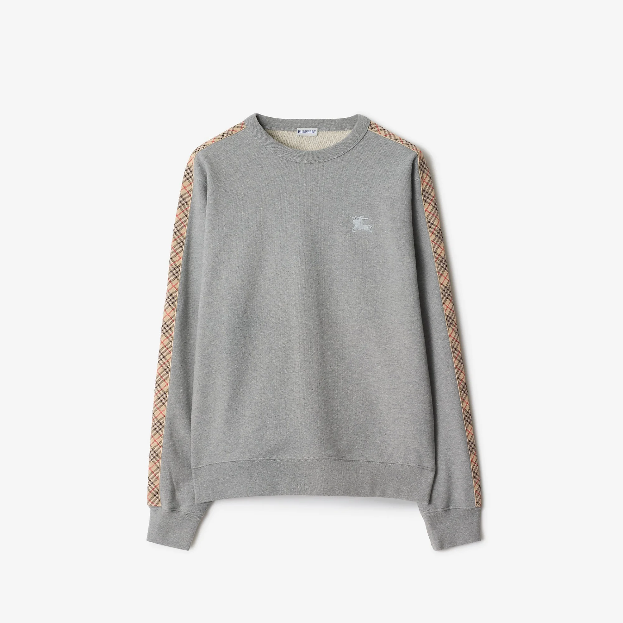 Product Details A sweatshirt in lightweight loop-back cotton, cut to a slim fit. The crew-neck style is framed with Burberry Check taping in our signature archive beige colourway. - Rib-knit trims - Embroidered Equestrian Knight Design at chest - Slim fit: this style is cut to a fitted silhouette. Fits true to size, take your normal size. - Machine wash - Item 81179871 Size & Fit - Length: 72cm/28.4in (size UK L) - Model’s height: 188cm/6ft 2in. Model wears size UK L Fabric & Care - 100% cotton - Trims: 100% cotton; 100% polyester; 99% cotton, 1% elastane - Made in Portugal