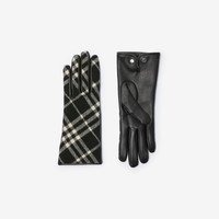 Product Details A pair of gloves made in Italy from Burberry Check wool cashmere backed with grainy calf leather. The design is finished with a logo-engraved metal stud and lined in soft cashmere silk. - Press-stud closure - Item 81142191 Fabric & Care - Outer: 86% wool, 14% cashmere - Palm: 100% calf leather - Lining: 70% cashmere, 30% silk - Made in Italy