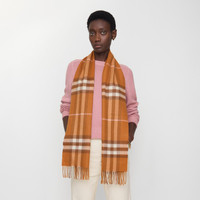 Product Details The iconic Burberry Check cashmere scarf, made in Scotland at a mill founded in 1797. Woven on traditional looms, the scarf takes more than 30 steps to complete. The fabric is washed in local spring water and brushed with teasels – dried flowers that are drawn along the surface of the cashmere to 'raise' the cloth, creating a natural lustre and ultra-soft finish. - Rectangular - Fringing at both ends - Item 81126441 Size & Fit - 168 x 30cm/66.1 x 11.8in Fabric & Care - 100% cashmere - Specialist dry clean - Made in Scotland