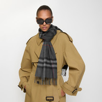 Product Details The iconic Burberry Check cashmere scarf, made in Scotland at a mill founded in 1797. Woven on traditional looms, the scarf takes more than 30 steps to complete. The fabric is washed in local spring water and brushed with teasels – dried flowers that are drawn along the surface of the cashmere to 'raise' the cloth, creating a natural lustre and ultra-soft finish. - Rectangular - Fringing at both ends - Item 80778801 Size & Fit - 168 x 30cm/66.1 x 11.8in Fabric & Care - 100% cashmere - Specialist dry clean - Made in Scotland