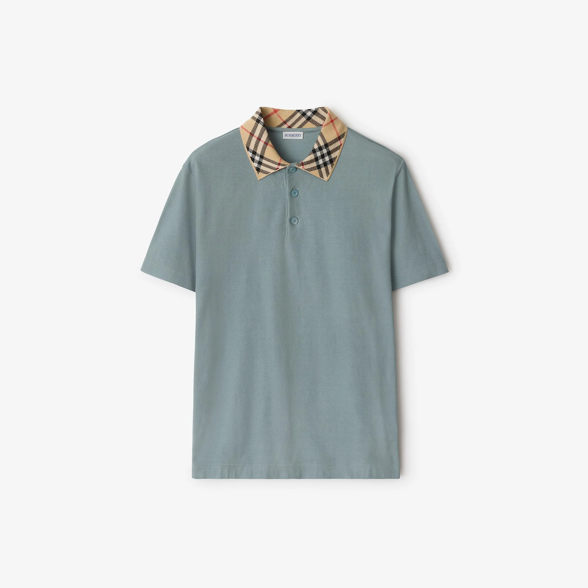 Product Details A polo shirt in lightweight Italian-woven cotton pique. The design is cut to a slim fit and knitted with our Burberry Check at the collar. - Button placket - Slim fit: this style is cut to a fitted silhouette. Fits true to size, take your normal size. - Machine wash - Item 81109441 Size & Fit - Length: 70cm/27.6in (size UK M) - Model’s height: 188cm/6ft 2in. Model wears size UK M Fabric & Care - 100% cotton - Collar: 100% cotton - Buttons: mother-of-pearl - Made in Portugal
