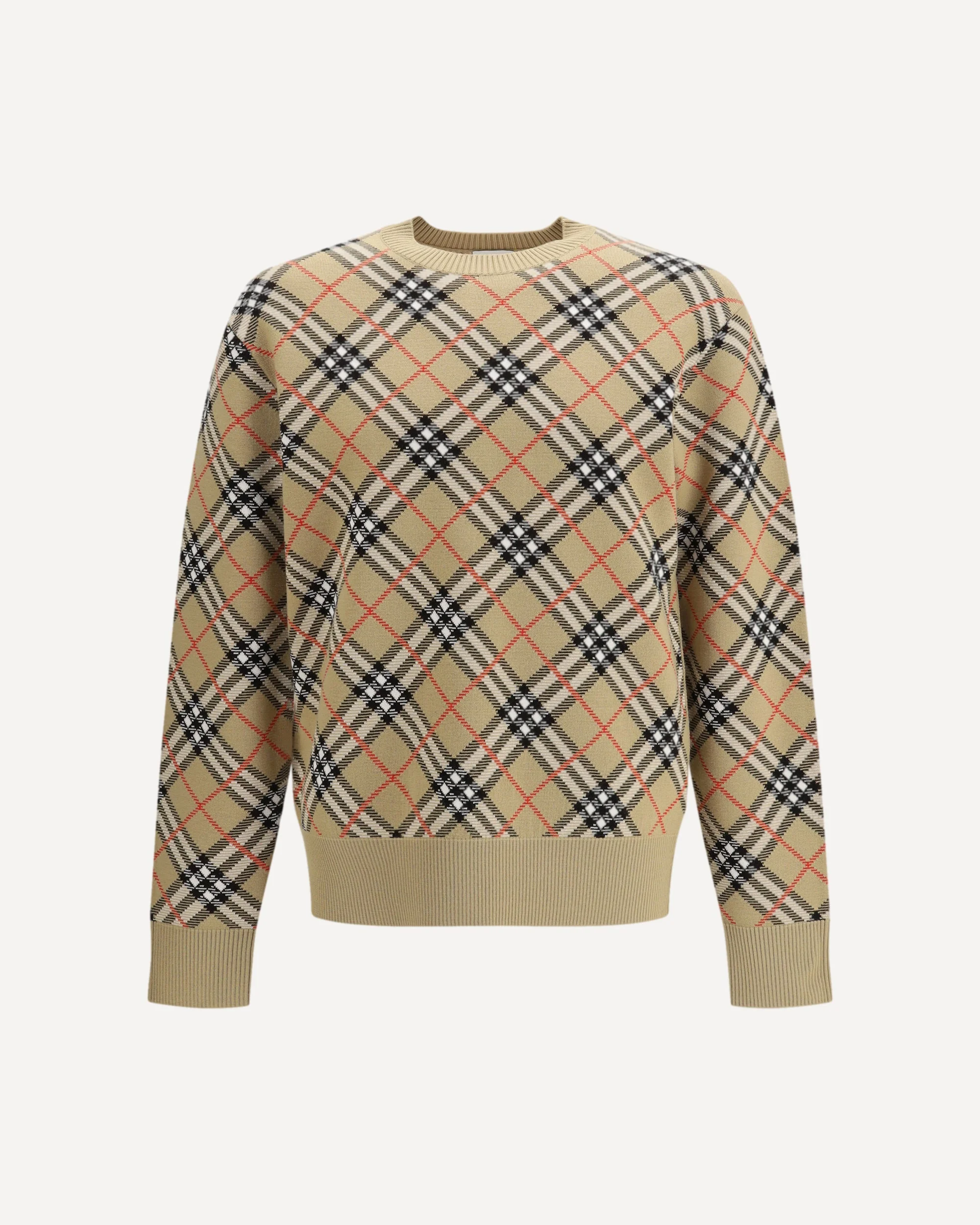 The wool Check Sweater by Burberry is a sophisticated piece that combines comfort and iconic style. Featuring long sleeves and a straight cut, it offers a comfortable and versatile fit. The brand's iconic check pattern takes center stage in the design, while the woven logo label adds a touch of understated elegance. Ribbed edges complete the look, making this sweater a must-have for those looking for a classic yet trendy piece. DETAILS - Sku: 8118457_B9368 - Season: SS26 - Fit: Regular - Composition: GENERAL 63% Cotton 33% Wool 3% Polyamide 1% Elastane - MADE IN ITALY