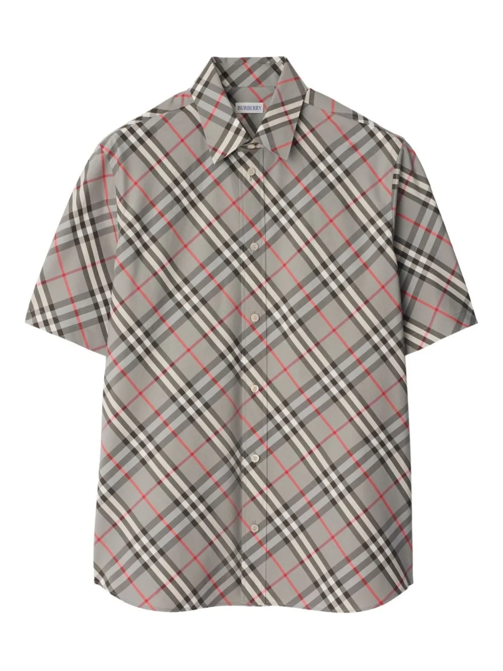 checked shirt Highlights - Light grey - Front button fastening - Classic collar - Short sleeves - Curved hem Imported Composition Cotton 100%