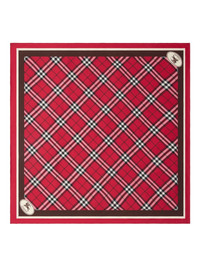 checked silk scarf Highlights - Bright red - Wraparound style - Signature equestrian knight motif - Striped border - Finished edge Made in Italy Composition Silk 100% SIZE & FIT Measurement LENGTH 35.43 in(90 cm) WIDTH 35.43 in(90 cm)