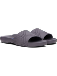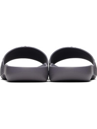 Rubber pool slides in gray. · Open square toe · Check pattern embossed at vamp · Logo embossed at molded rubber footbed · Treaded rubber sole Supplier color: Magnet Upper: rubber. Sole: rubber. Made in Italy 251376M234013