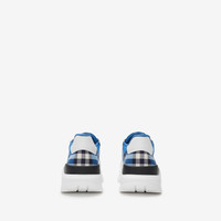 Product Details Sneakers made in Italy from a nylon blend woven with a seasonal Burberry Check and trimmed with calf leather. The style is set on a chunky, curved sole with a tonal raised logo at the front strap. - Lace-up and Velcro-strap closure - Raised Burberry lettering at strap, embossed Burberry lettering at heel - Comes with a dust bag - Item 81106261 Fabric & Care - Upper: 93% polyamide, 4% calf leather, 3% polyurethane* - Trim: 70% polyester, 10% polyamide, 10% thermoplastic polyurethane, 10% zinc alloy - Lining: 54% polyester, 38% sheep leather, 8% goat suede - Sole: 100% rubber - *The main material of this product is made with at least 50% recycled content - Made in Italy