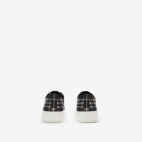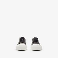 Product Details A pair of low-top sneakers woven with the Burberry Check. The style is set on a chunky rubber sole and printed with our logo at the tongue. - Lace-up closure - Embossed Burberry lettering at heel and sole - Comes with a dust bag - Item 81074951 Fabric & Care - Upper: 99% polyester, 1% calf leather - Trim: 70% polyester, 30% brass - Lining: 64% cotton, 30% sheep leather, 4% polyester, 2% polyurethane - Sole: 100% rubber - Made in Italy