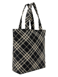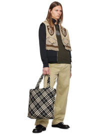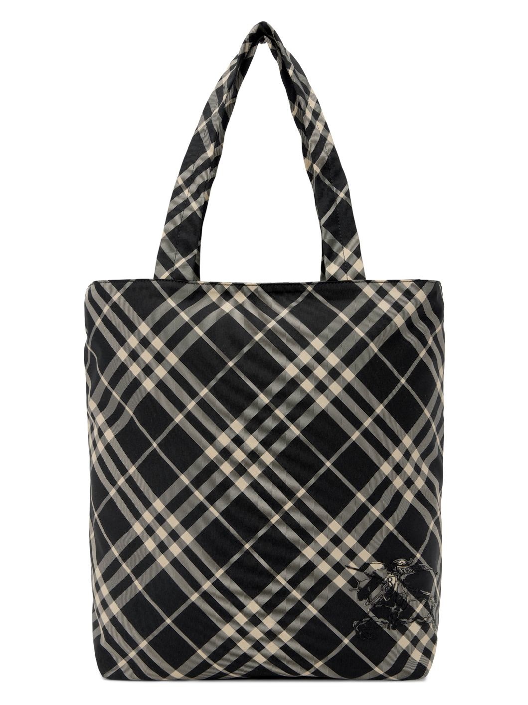 Lightweight plain-woven tote in black. · Jacquard check pattern throughout · Fixed carry handles · Logo applique at face · Zip closure · Zip pocket at interior · Fully lined · H16" x W13" x D5" Supplier color: Black/Calico