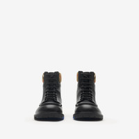 Product Details The Rogue combat boots are made in Italy from smooth calf leather, subtly embossed with the Equestrian Knight Design at the side. The style is finished with a knitted Burberry Check cuff in our signature sand beige colourway. - Lace-up closure - Rounded toe - Equestrian Knight Design at sole - Comes with a dust bag - Item 81155991 Fabric & Care - Upper: 90% calf leather, 8% polyamide, 2% elastane - Lining: 95% calf leather, 3% polyester, 2% polyurethane - Sole: 100% thermoplastic polyurethane - Made in Italy
