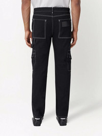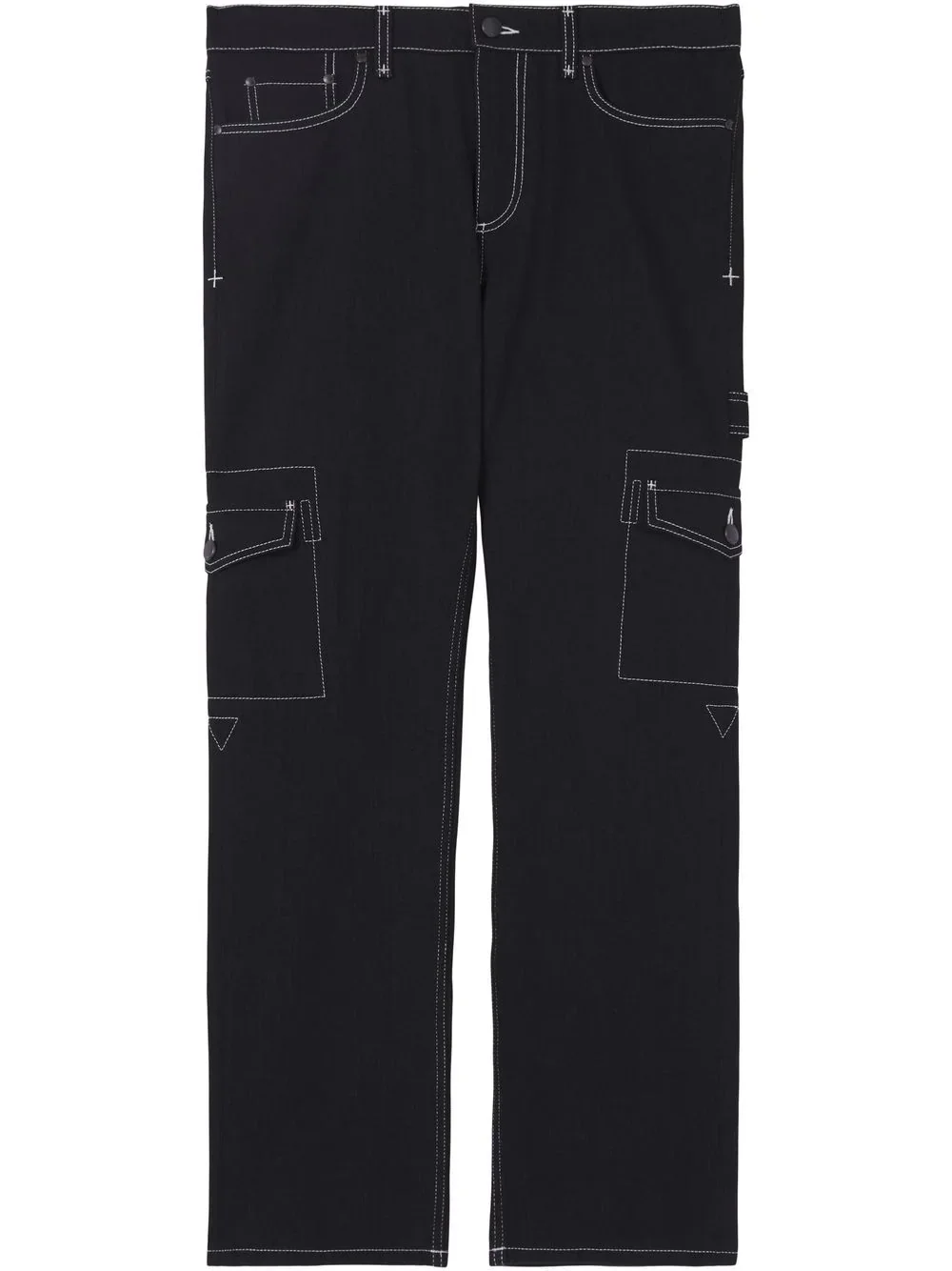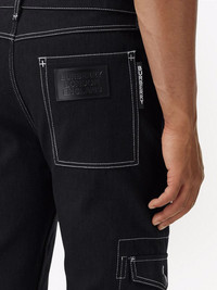 contrast-stitch straight-leg jeans These jeans from Burberry take influence from cargo-style trousers. Cut from cotton, they boast flap pockets and contrast stitching. Made in Italy Composition Cotton 100% Trims: Calf Leather 100% Washing instructions Dry Clean Only