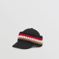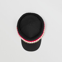 PRODUCT DETAILS A cotton baseball cap embroidered with our logo, layered with a striped headband in crochet-knit wool. The design made its debut in Riccardo Tisci’s Spring/Summer 2022 menswear collection, an exploration of collective creativity and the freedom to experiment. 100% cotton Trim: 100% wool; 100% lambskin Adjustable snap closure Embroidered Burberry lettering at back Wipe clean with a cloth, do not use solvents Made in Italy 80524981