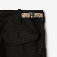Product Details Cargo trousers made from cotton twill, garment-dyed for a washed finish and cut to an oversized fit. The style features waist adjusters with B buckles and Burberry Check taping in signature archive beige. - Button and zip closure - Adjustable waist - Hip press-stud flap pockets, side press-stud flap patch pockets, back press-stud flap pockets - Oversized fit: our loosest cut, designed for exaggerated proportions. Consider taking a size down. - Machine wash - Item 81192041 Size & Fit - Inside leg length: 82.5cm/32.5in (size IT 48) - Model’s height: 184cm/6ft. Model wears size IT 48 Fabric & Care - 100% cotton - Pocket lining: 100% cotton - Imported