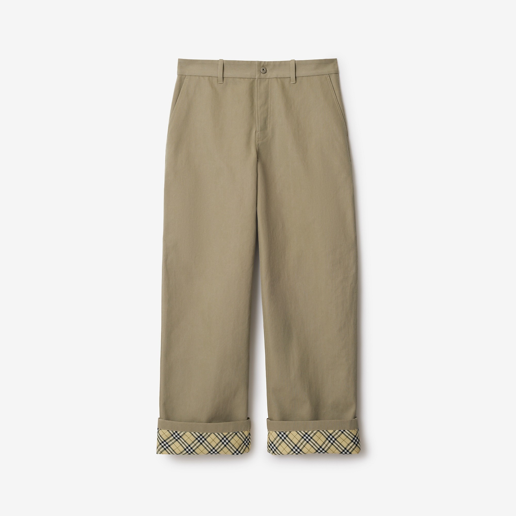 PRODUCT DETAILS Carpenter trousers in Italian-woven cotton canvas, lined at the cuffs in Burberry Check. The workwear-inspired style is cut to an oversized fit and has our B shield embroidery at the pocket. - Inside leg length: 79.5cm/31.3in (size IT 50) - Model’s height: 185cm/6ft 3in. Model wears size IT 50 Oversized fit: our loosest cut, designed for exaggerated proportions. We recommend sizing down. Outer: 100% cotton Lining: 100% cotton Pocket lining: 100% cotton Specialist dry clean Imported Item 80975561