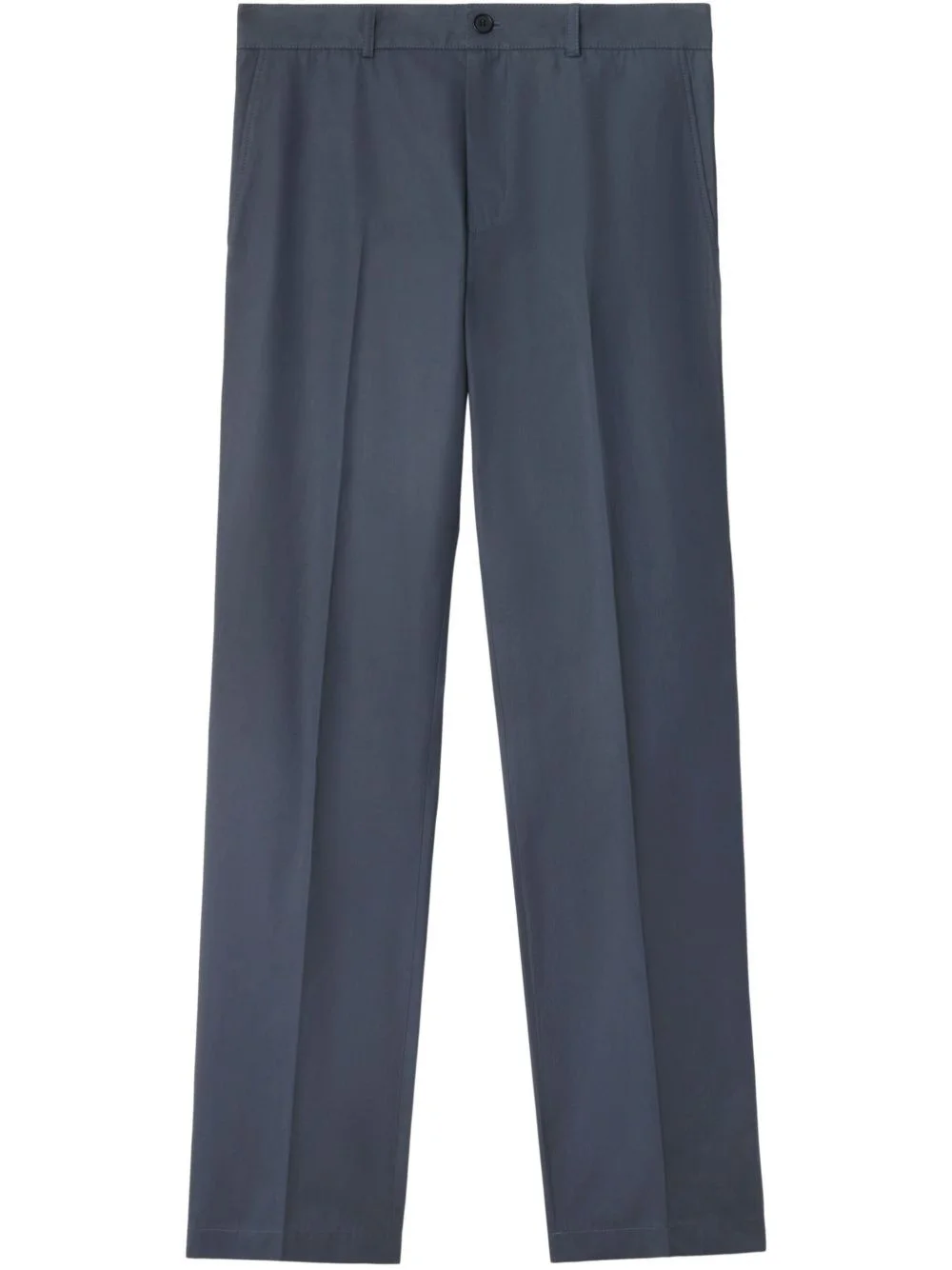 cotton chino trousers Highlights - Blue - Front button and zip fastening - Belt loops - Rear welt pocket - Two side slit pockets Imported Composition Lining: Cotton 100% Outer: Cotton 100%, Buffalo Horn 100%