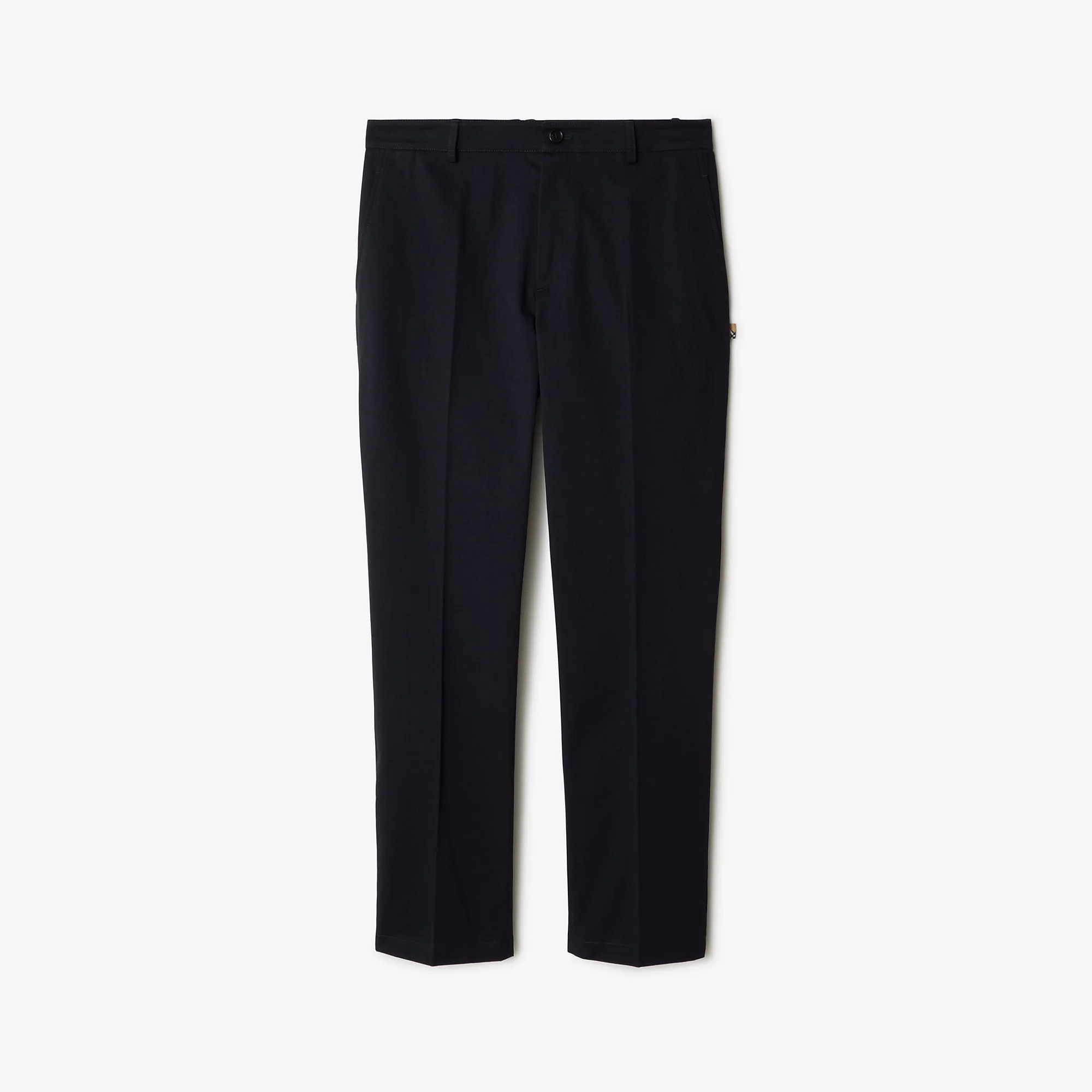 Product Details A pair of chinos in Italian-woven cotton twill, tailored to a slim fit. The design features a Burberry Check tab and is embroidered with a tonal Equestrian Knight Design. - Button and zip closure - Side slip pockets, back button welt pocket - Embroidered Equestrian Knight Design at back pocket - Slim fit: this style is cut to a fitted silhouette. Fits true to size, take your normal size. - Machine wash - Item 81106111 Size & Fit - Inside leg length: 82cm/32.3in (size IT 50) Fabric & Care - 100% cotton - Pocket lining: 100% cotton - Buttons: buffalo horn - Imported