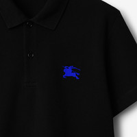 Product Details A polo shirt made in Italy from cotton pique and embroidered with our Equestrian Knight Design. The style is cut to a slim fit. Part of Burberry Classics, wardrobe foundations with a unique Burberry slant. - Button placket - Embroidered Equestrian Knight Design at chest - Slim fit: this style is cut to a fitted silhouette. Fits true to size, take your normal size. - Machine wash - Item 80849371 Size & Fit - Length: 73cm/28.7in (size UK M) - Model's height: 188cm/6ft 2in. Model wears size UK L Fabric & Care - 100% cotton* - Trims: 98% cotton, 2% elastane; 100% polyester - Buttons: mother-of-pearl - *100% of the cotton in the main material is organic - Made in Italy