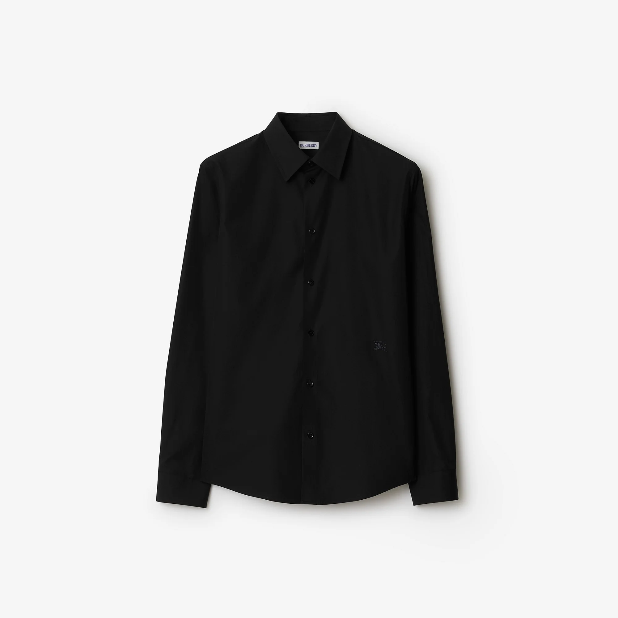 Product Details A long-sleeved shirt in Italian-woven cotton poplin, embroidered with the Equestrian Knight Design. The style is tailored to a slim fit. Part of Burberry Classics, wardrobe foundations with a unique Burberry slant. - Button closure - Point collar - Single-button cuffs - Curved hem - Embroidered Equestrian Knight Design - Slim fit: this style is cut to a fitted silhouette. Fits true to size, take your normal size. - Machine wash - Item 80919251 Size & Fit - Length: 79cm/31.1in (size UK 41) - Model's height: 185cm/6ft 1in. Model wears size UK 41 Fabric & Care - 100% cotton - Buttons: mother-of-pearl - Imported