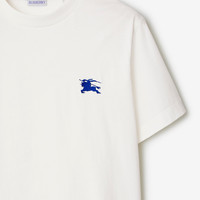 Product Details A T-shirt in cotton jersey, embroidered with our Equestrian Knight Design. The style is cut to a slim fit. Part of Burberry Classics, wardrobe foundations with a unique Burberry slant. - Rib-knit neckline - Embroidered Equestrian Knight Design at chest - Slim fit: this style is cut to a fitted silhouette. Fits true to size, take your normal size. - Machine wash - Item 80882951 Size & Fit - Length: 73cm/28.7in (size UK M) - Model's height: 188cm/6ft 2in. Model wears size UK L Fabric & Care - 100% cotton* - Trim: 100% cotton - *100% of the cotton in the main material is organic - Made in Portugal
