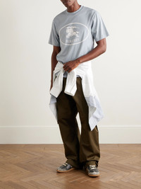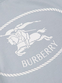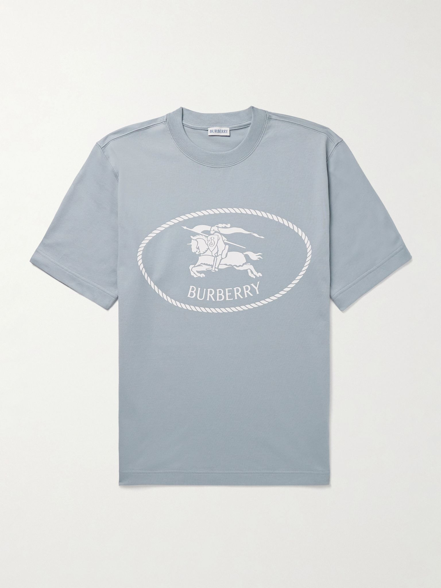 Burberry's T-shirt is printed with the 'Equestrian Knight' motif, which has been a hallmark of the house since the '80s. It's made from cotton-jersey and has a wide ribbed crewneck. Size & Fit - Fits true to size. Take your normal size - Designed for a slim fit - Lightweight, stretchy fabric - Model is shown wearing a M - Model measures: chest 38"/ 96cm, height 6'1"/ 185cm Details & Care - Light-blue and white cotton-jersey - 100% cotton; trim: 98% cotton, 2% elastane - Machine wash