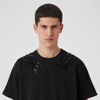 PRODUCT DETAILS A cotton jersey T-shirt cut to a relaxed fit, embellished with light-catching crystals to form our oak leaf crest – a reconstructed version of our archive emblem. - T-shirt length: 74cm/29.1in. This is based on a size UK M. - Model’s height: 192cm/6ft 4in. Model wears size UK M. Relaxed fit. This style is cut to a loose silhouette. 100% cotton Trim: 98% cotton, 2% elastane Specialist dry clean Imported Item 80643921