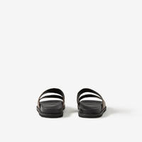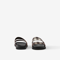 PRODUCT DETAILS Italian-made slides in cotton canvas, highlighted with our Exaggerated Check. The style is styled with a cut-out detail and designed with a contoured insole for comfort. Upper: 75% polyurethane, 25% cotton Lining: 100% sheep leather Sole: 95% rubber, 5% polyurethane Slip-on style Made in Italy Item 80648091