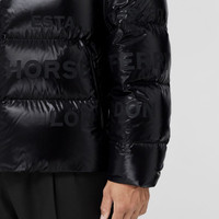 PRODUCT DETAILS A quilted puffer jacket in nylon cut to a relaxed fit and highlighted with our Horseferry print. The funnel-neck design features a detachable hood, rib-knit cuffs and is filled with insulating goose down and feathers. Relaxed fit Jacket length: 70cm/27.6in. This is based on a size UK M as proportions change slightly according to size. Model’s height: 189cm/6ft 2in. Model wears size UK M. Outer: 100% polyamide Trim: 100% polyamide; 86% cotton, 13% polyamide 1% elastane Lining: 100% polyester Hood lining: 100% polyamide Filling: 90% goose down, 10% goose feathers Wadding: 100% polyester Concealed zip and press-stud closure Side zip pockets, interior press-stud pocket, interior zip pocket Detachable drawcord hood Drawcord waist Machine wash Imported 80579901