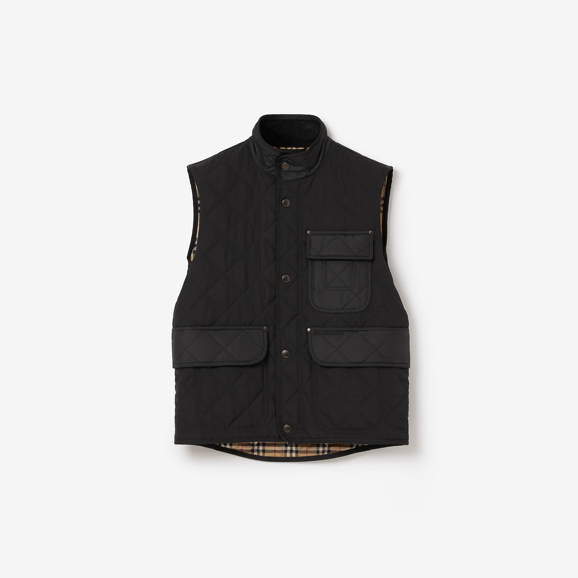 Product Details A quilted gilet with 37.5® thermoregulation technology for insulation and breathability. The funnel neck style is cut to a regular fit and lined with Burberry Check cotton blend. - Press-stud and zip closure - Front press-stud flap pockets - Burberry Check lining - Regular fit. Fits true to size, take your normal size. - Item 80497831 Size & Fit - Length: 74cm/29.1in (size UK M) - Model’s height: 188cm/6ft 2in. Model wears size UK L Fabric & Care - Outer: 100% polyester - Trims: 100% polyamide; 100% cotton - Lining: 70% cotton, 30% polyester - Filling: 100% polyester - Specialist dry clean - Imported