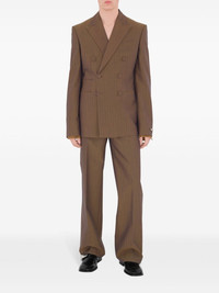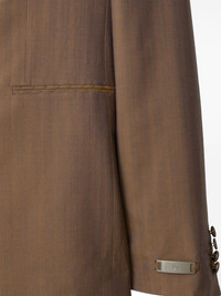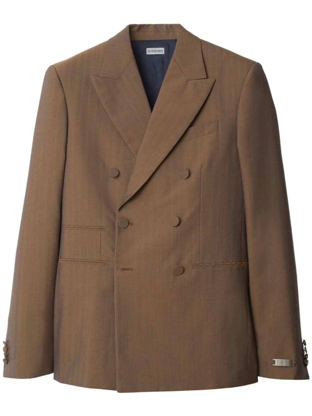 double-breasted wool blazer Highlights - Tobacco brown - Wool - Herringbone pattern - Silver-tone logo plaque - Peak lapels - Double-breasted button fastening - Shoulder pads - Long sleeves - Buttoned cuffs - Chest welt pocket - Three front jetted pockets - Straight hem - English rear vents - Full lining Made in Italy Composition Lining: Acetate 50%, Viscose 50% Outer: Wool 100%