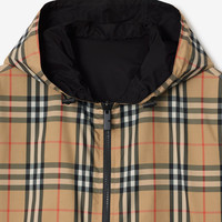 Product Details Relaxed fit: a looser cut than our regular fit. A lightweight jacket reversing from the Burberry Check to a solid colour nylon with a logo applique. The hooded style is cut to a relaxed fit. - Two-way zip closure - Drawcord hood and hem - Side zip pockets; reverse zip pockets - Elasticated cuffs - Silicone patch with raised Burberry lettering at chest - Comes with a garment bag - Machine wash - Item 81265361 Size & Fit - Relaxed fit: a looser cut than our regular fit. - Length: 68.5cm/27in (size UK M) - Model’s height: 184cm/6ft. Model wears size UK M Fabric & Care - Outer: 100% polyester - Reverse: 100% polyamide - Imported