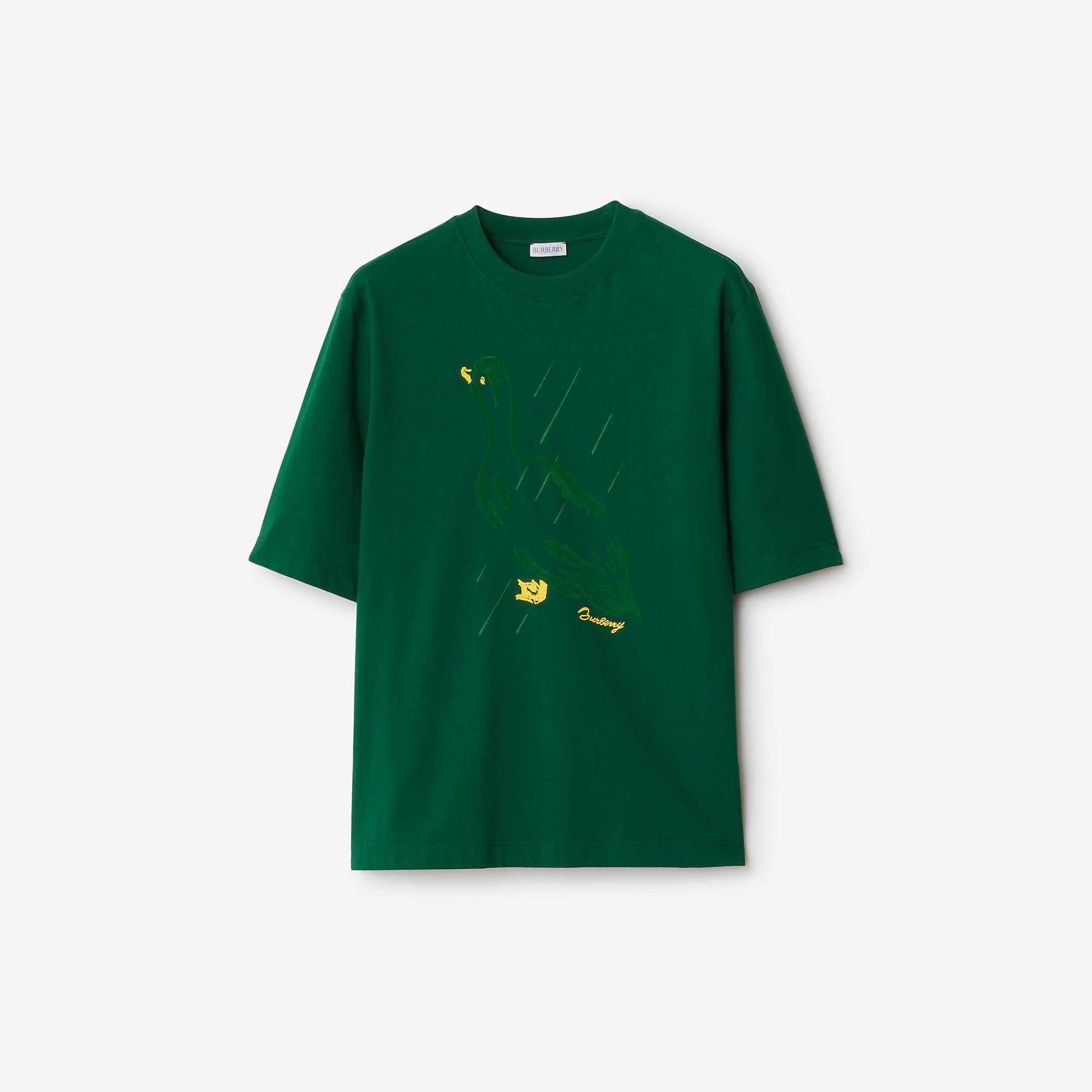 Product Details A cotton jersey T-shirt made in Italy and cut to a slim fit. The duck is taken from an archive Burberry catalogue and screen-printed with a soft, flocked finish. - Rib-knit neckline - Printed Burberry lettering - Slim fit: this style is cut to a fitted silhouette. Fits true to size, take your normal size. - Machine wash - Item 80918741 Size & Fit - Length: 71.5cm/28.2in (size UK M) - Model’s height: 188cm/6ft 2in. Model wears size UK M Fabric & Care - 100% cotton - Trim: 97% cotton, 3% elastane - Made in Italy