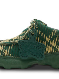 EKD check-print derby shoes Highlights - Green/pale yellow - Calf leather - Check pattern - Ribbed knit - Signature equestrian knight motif - Logo tag - Round toe - Front lace-up fastening - Branded leather insole - Rubber sole Made in Italy Composition Outer: Polyamide 98%, Spandex/Elastane 2% Sole: Polyethylene vinyl acetate (PEVA) 85%, Thermoplastic Polyurethane (TPU) 15% Lining: Calf Leather 100%