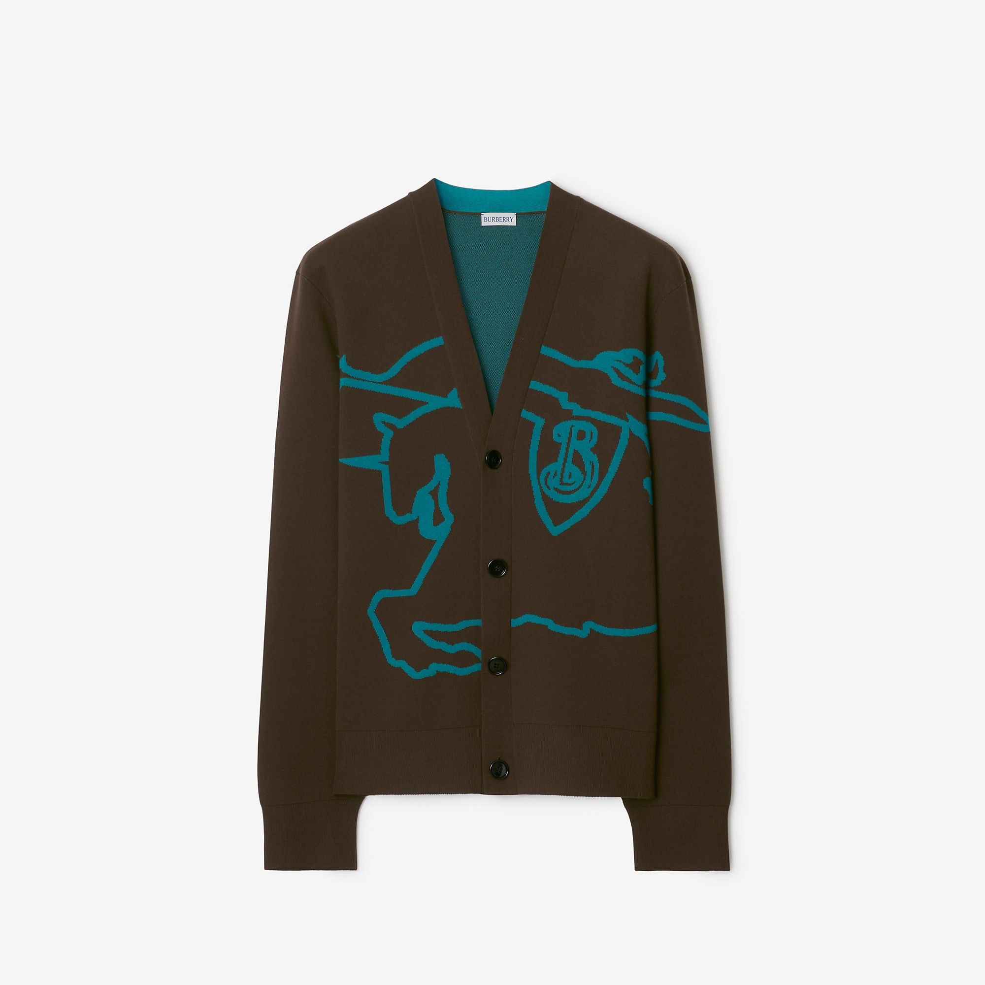 Product Details A cardigan made in Italy from a cotton blend, jacquard-knitted with the Equestrian Knight Design. The V-neck style is cut to a regular fit. - Button closure - Regular fit. Fits true to size, take your normal size. - *Containing organic cotton. - Item 80952931 Size & Fit - Length: 69cm/27.2in (size UK L) - Model's height: 185cm/6ft 1in. Model wears size UK L Fabric & Care - 96% cotton, 3% polyamide, 1% elastane* - Trim: 92% cotton, 7% polyamide, 1% elastane - Specialist dry clean - Made in Italy